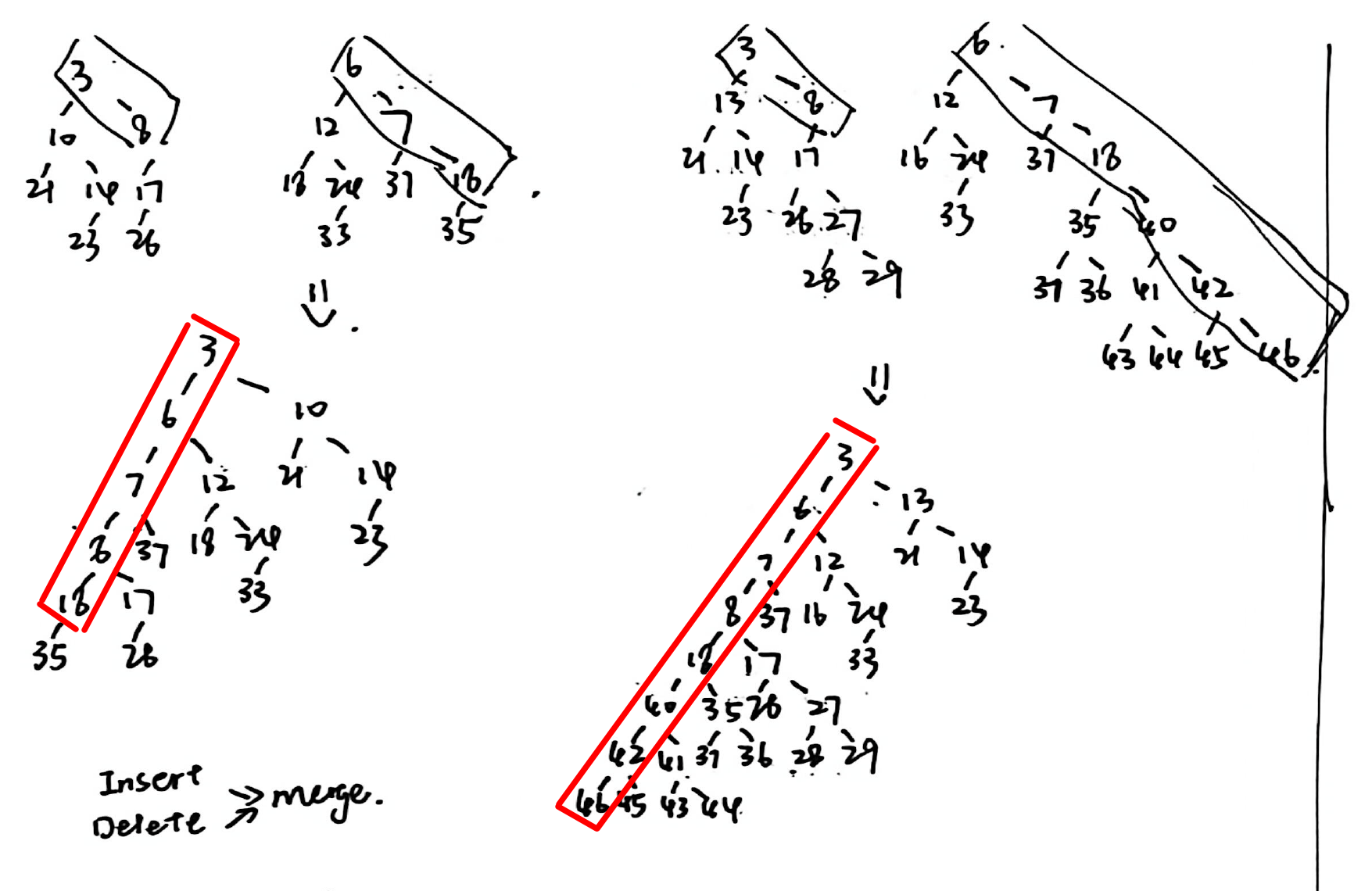 - 先提出两个 heap 的 right path。